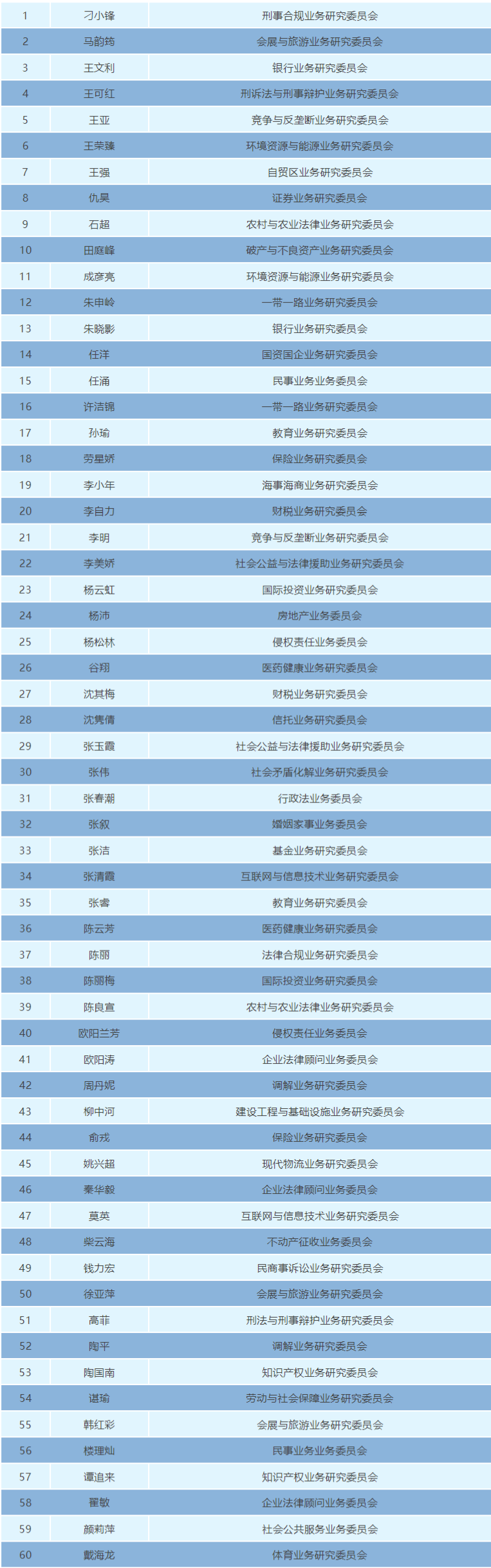 2019年9月29日から11月3日まで、上海弁護士会は第11期第8回会長会議の決定に従い、現行の経営調査委員会の設置数を当初の34名から52名に調整し、すべての個人会員を公募した。委員の募集に関しては、研究協会は、優れた政治的資質と優れた専門的能力を備えた弁護士をチームに集め、研究協会の参加と影響力を拡大し、上海弁護士業界全体のサービスの質と競争力をさらに向上させます。 2019年12月6日、第11期弁護士会第8回会長会議において、「第11期弁護士会業務調査会委員名簿」が審議され、承認されました。